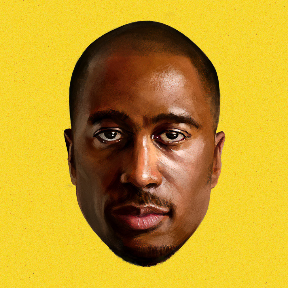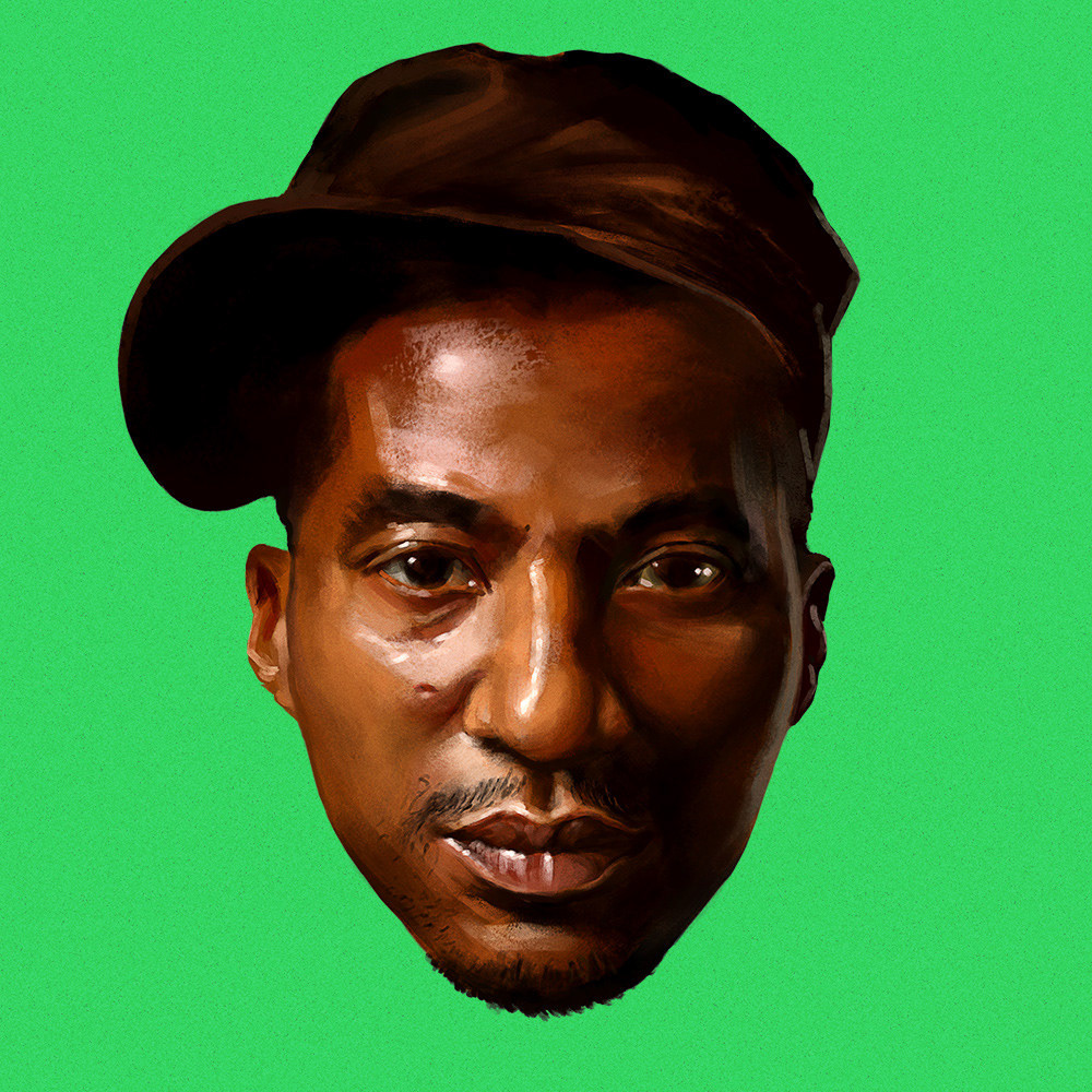Illustrated portraits of Phife Dawg, Q-Tip, Ali Shaheed, and Jarobi.